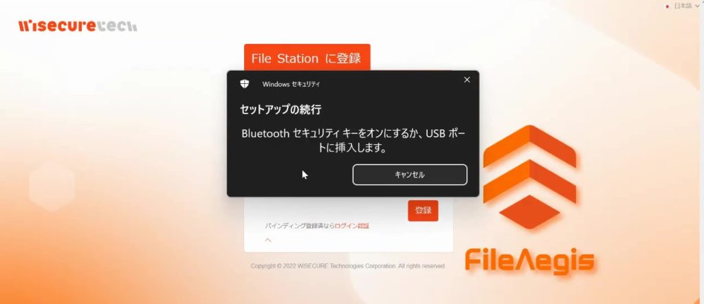 2. [セキュリティキーの設定]と[セットアップの続行]のポップアップウィンドウで[OK]をクリックします。