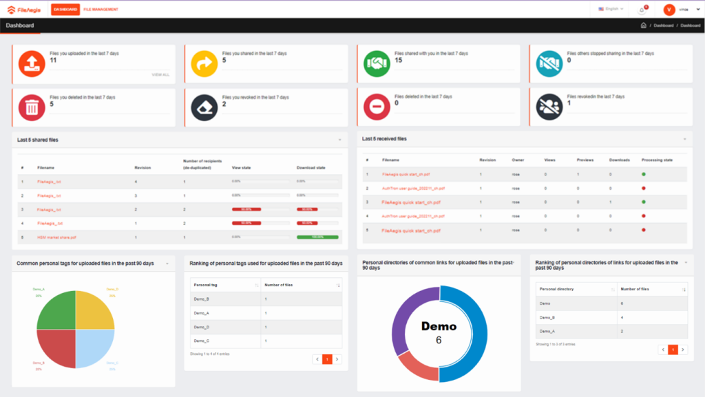 FileAegis™ Dashboard helps you keep track of all file usage related to you, including tag and directory usage.